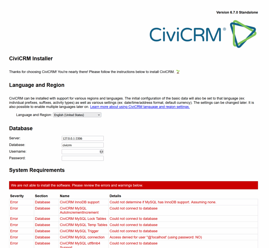 If you get any of this wrong you may need to empty the database, delete the configuration file and start again, perhaps also using a “Private” browser window or clearing caches and deleting cookies to recover.
